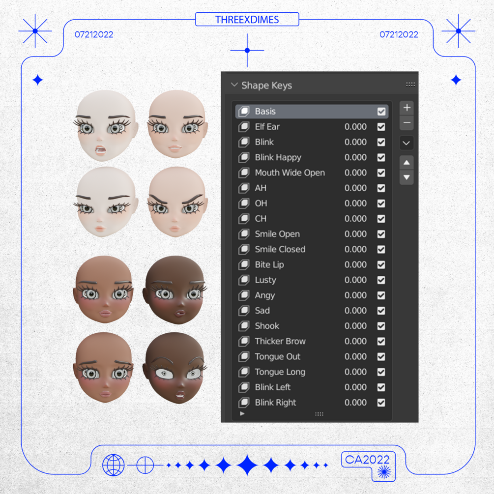 Model has fully customizable dentures and tongue that are rigged. You are allowed to make custom shape keys on your own model for personal or commercial use.