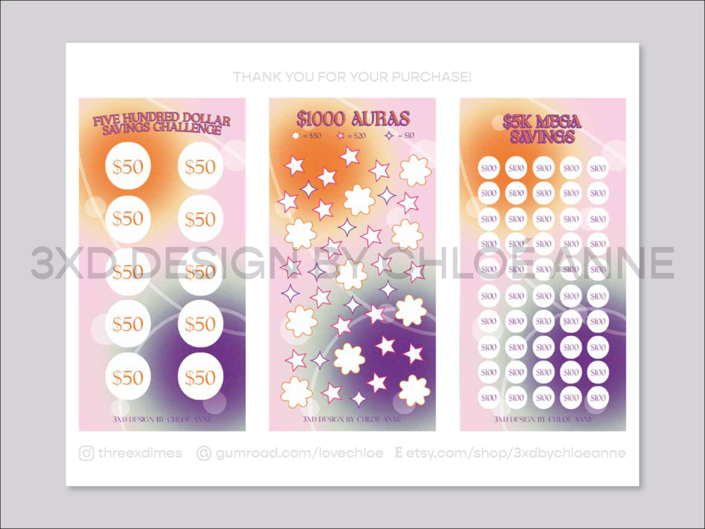 A6 Savings Challenge Trackers | Wallet Dividers | Budget Binders | Trending Aura Print