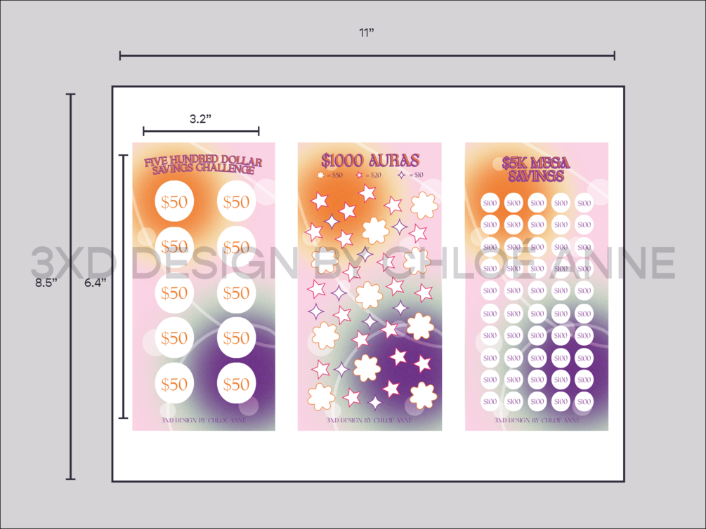 A6 Savings Challenge Trackers | Wallet Dividers | Budget Binders | Trending Aura Print
